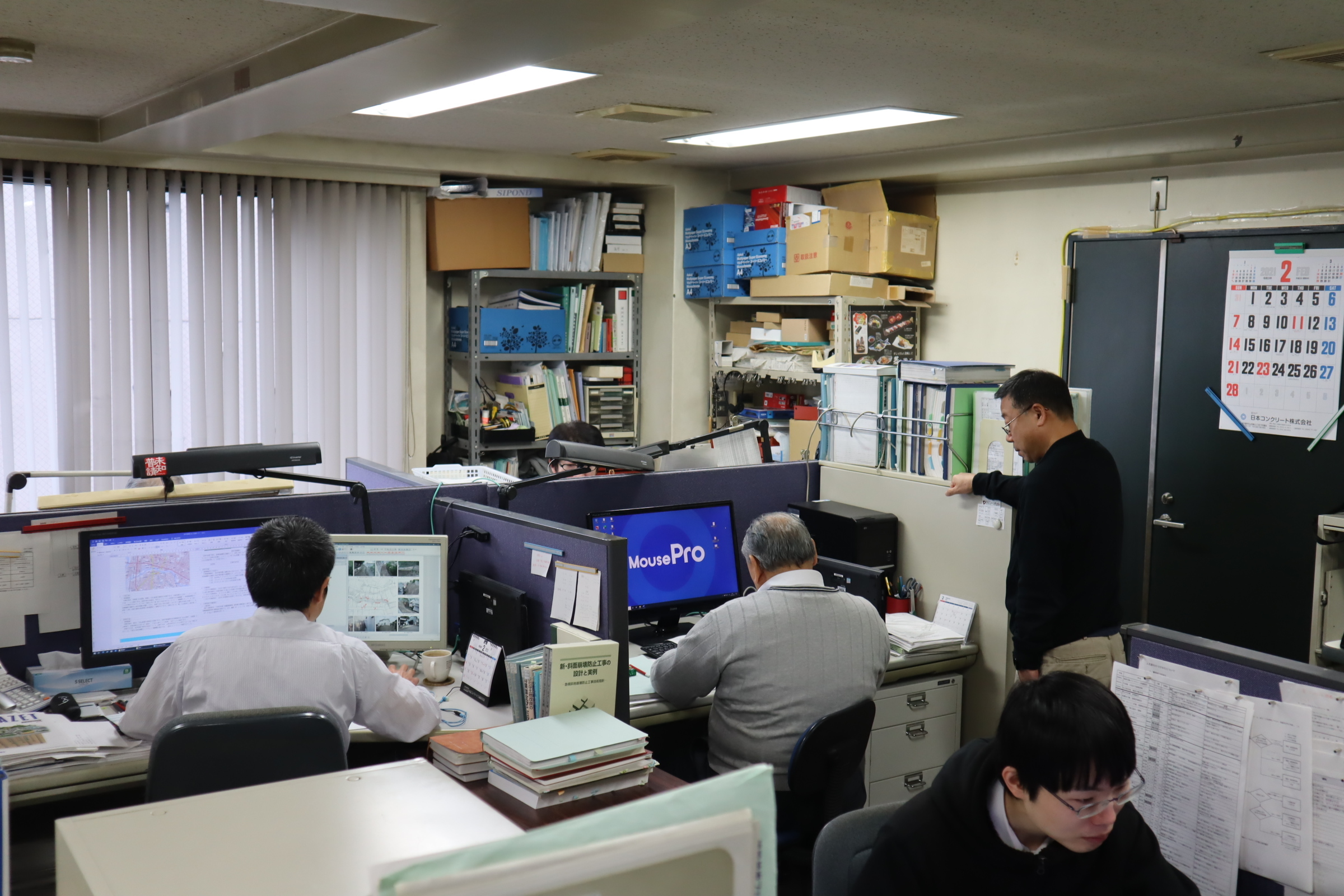 私が担当する仕事では、自分の書いた設計図が形になっていくという喜びを感じたり、図面の納品後に発注者側から点数で評価されることに一喜一憂するということもありません。でも技術の人が携われるのは自らの担当業務に限られていますが、私の場合、大建コンサルタントという会社が担うすべての業務に関わることができます。ですから、会社全体を支えているんだというところにやりがいを感じています。