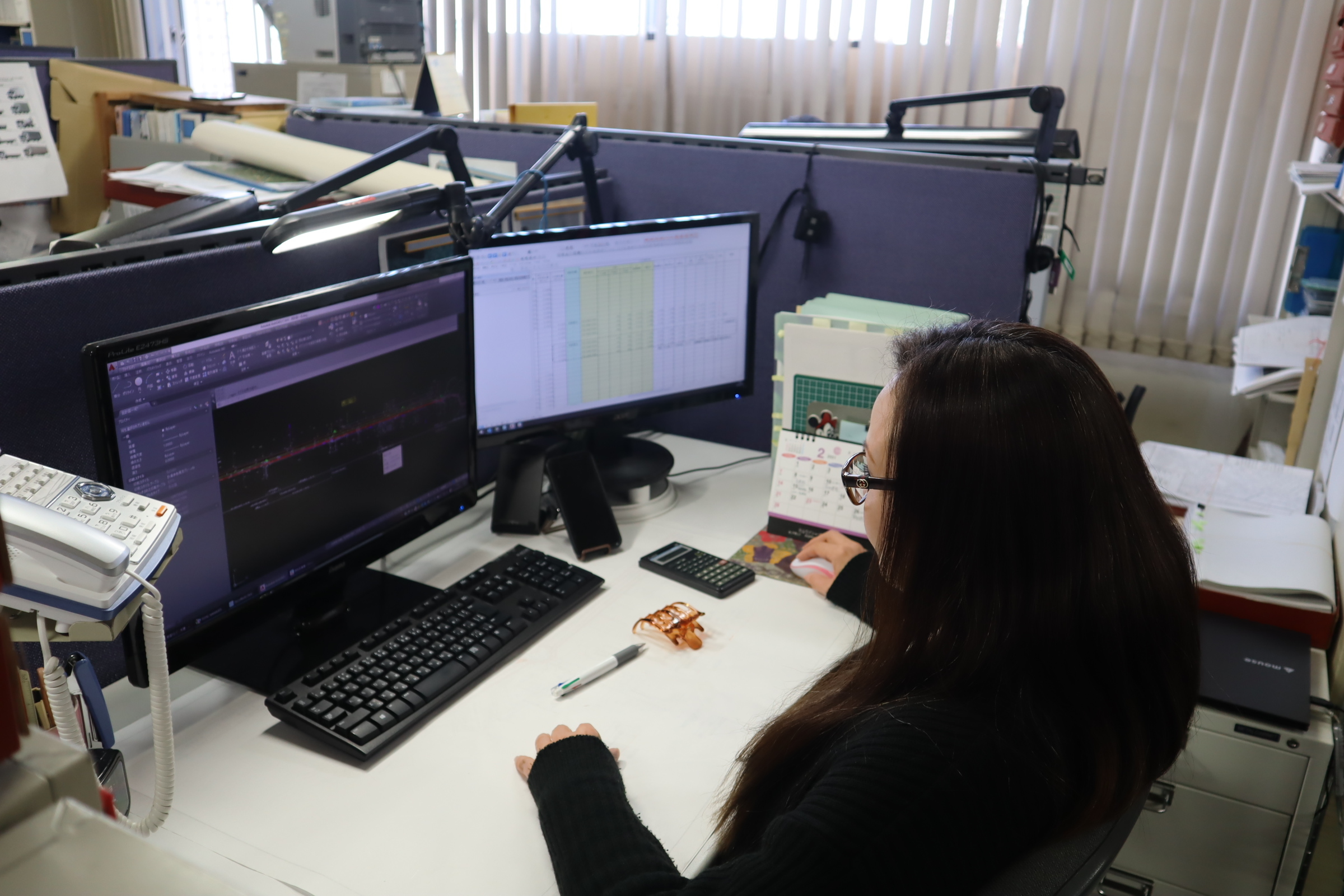 当たり前のことですが、はじめは誰もが未経験者。全くの異分野から建設コンサルタントの世界に飛び込んだSさんは、CADによる製図などのスキルを実際の仕事を通じて習得し、今では技術部の第一線で活躍しています。